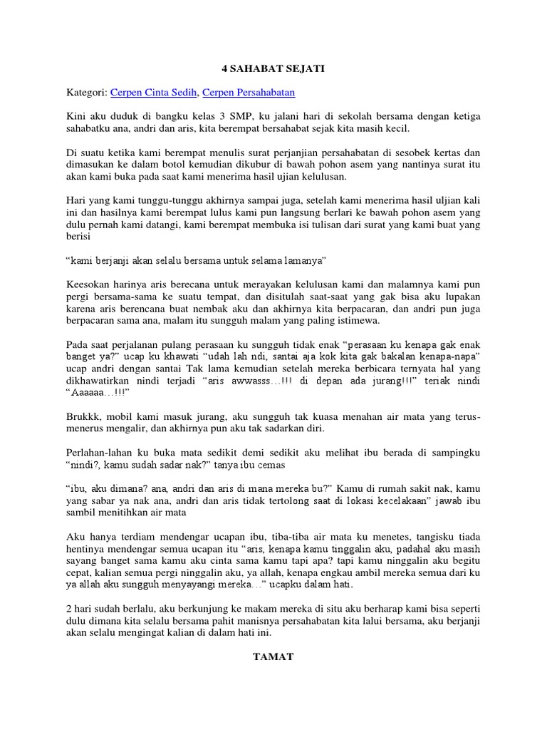 Cerpen sedih persahabatan sejati. Cerpen Anak Cerpen Persahabatan Lolos moderasi pada. Cerpen Persahabatan Sd Singkat Cerpen Contoh Novel Pendek Tentang Sahabat Kumpulan Cerita Lucu. 4 Sahabat Sejati Cerpen Karangan.